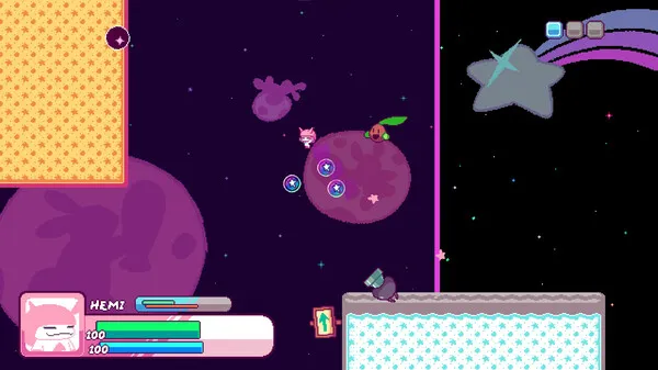 Astropods: Starside Glaze is a 2D Fighting Platformer with endless mobility and combat potential! Starring as Hemi (pink) and Acro (blue), swap between them at any time to utilize their unique attacks and physics within various environments.