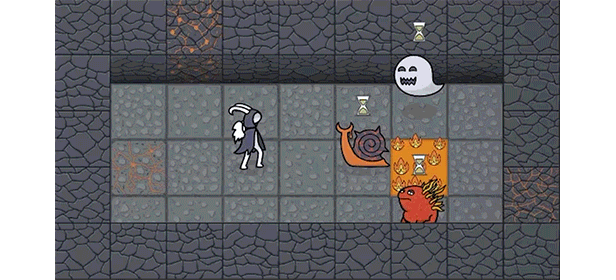 Every enemy has a predictable behavior that feels like a micro puzzle. Learn their patterns and you will always be able to beat them with any weapon and without taking any damage.