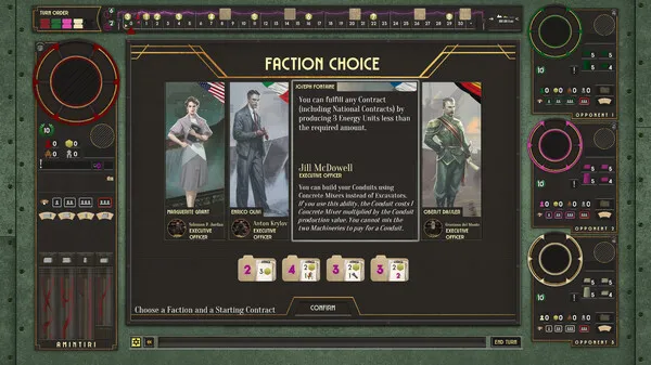 Objectives, Energy Contracts, and Technologies are randomly chosen from all available possibilities, ensuring a unique experience every time you play. This element of randomness fosters replayability, making each game a new challenge to overcome and forcing you to adapt your planning and strategy.