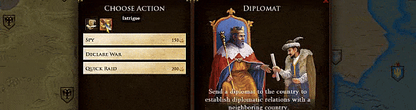 Use diplomats to improve relations, gain allies or even entire kingdoms. Spies, in turn, can help you gain information or even weaken the enemy.