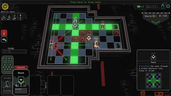 No memorizing openings, long drawn-out endgames, or stalemates. Start with 1 piece instead of 16. Cast new pieces with exciting abilities onto the board. No analysis paralysis – enemy movement stays basic until you encounter the dungeon’s bosses… Collect Undo Tokens if you need ’em, or more gold if you don’t!