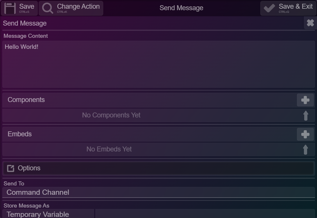 > Does it require you to install mods for stuff like buttons or select menus? Nope! You can find components in the send message action.