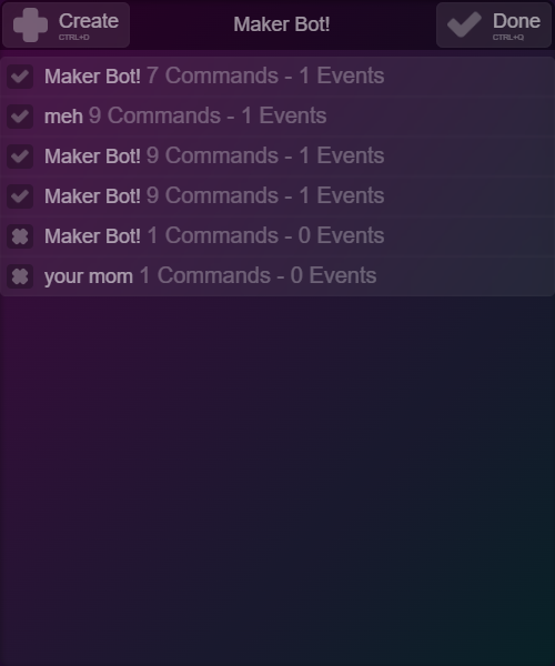 If you’re coming from Discord Bot Maker (not affiliated), you’ll find that this app is very similar (although more updated) in most cases.