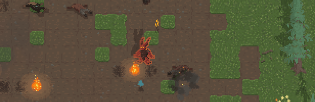 • Terrain matters: Fires spread rapidly on grass, water can be frozen, pits can be fallen into.