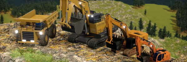The entire terrain is fully dynamic. Every mountain can be flattened, every valley filled, and even the ocean can be reclaimed to expand the available land. Create open-pit mines to reach deep ore deposits, or dump excess rock into the ocean to expand your shoreline. Build ramps and slopes so your vehicles can reach any elevation.