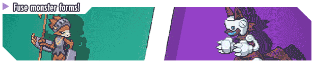 Getting close to your companion has benefits–while transformed you can combine your strengths to gain the upper hand in battle! Any two monster forms can be fused to produce unique, fully-animated new fusion forms.