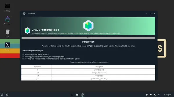 CHAQS is an instructive CTF (Capture The Flag) game that performs the basic functions of an operating system. While it meets your expectations from an operating system to a certain extent with the applications it contains, CHAQS progresses in the direction of more challenges in terms of gameplay. Therefore, it meets the visual needs of the user with its graphical interface, but the terminal creates the entire game aspect of CHAQS. Although all of the terminal commands are written to meet gaming needs, some of them can operate outside of these needs. The prepared challenges do not fully reflect real-world ethical hacking, they are similar.