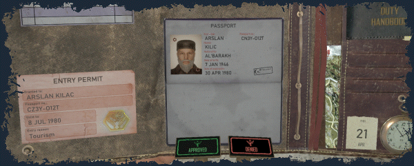 The year is 1981, and as a young officer trainee, you are assigned to work at a border post in the mountainous region of Karikatka. Entry into the Acarist People’s Republic is strictly regulated by the party and your every move is monitored! The situation at the border escalates when your comrade is killed during one of the interventions…
