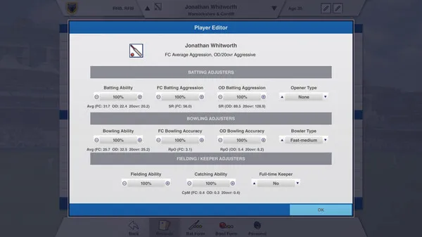 The new in-game Player Editor feature allows for editing player abilities, including batting, bowling, fielding, aggression and opener type. For the first time, you can adjust your players as you want without sacrificing the core player-selection game play.