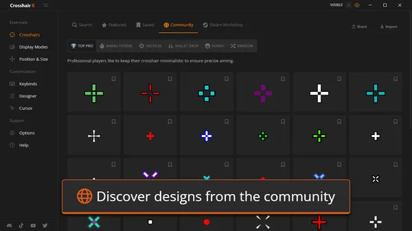 - Designer: Easy to use sliders let you adjust all features of your crosshair