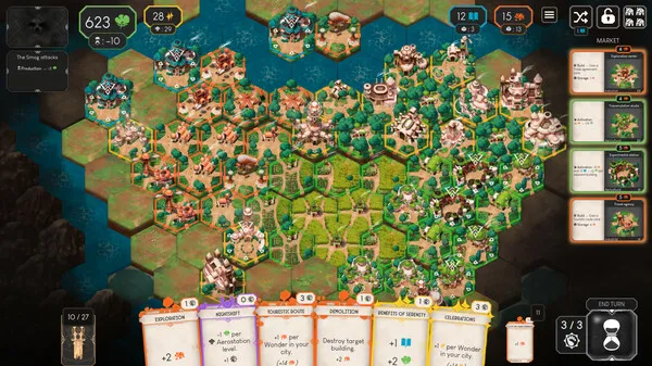 - Optimize your deck — Gain increasingly powerful cards as you improve your city. Your cards and buildings interact in various ways: choose them wisely to create the most powerful combinations!