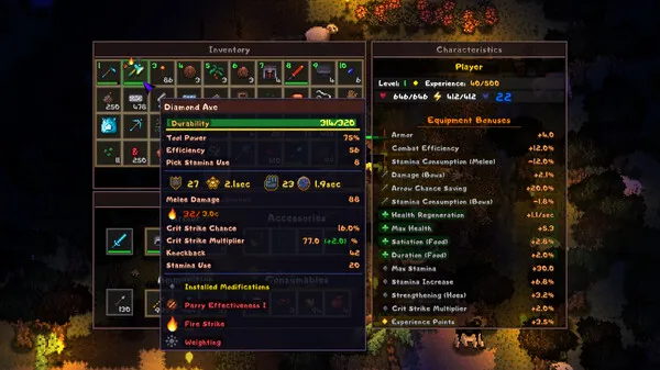 Install various upgrades on your weapons, armor, tools, and shields, repair them, and sharpen armor for different classes. Thanks to the extensive functionality, you can make each item unique!