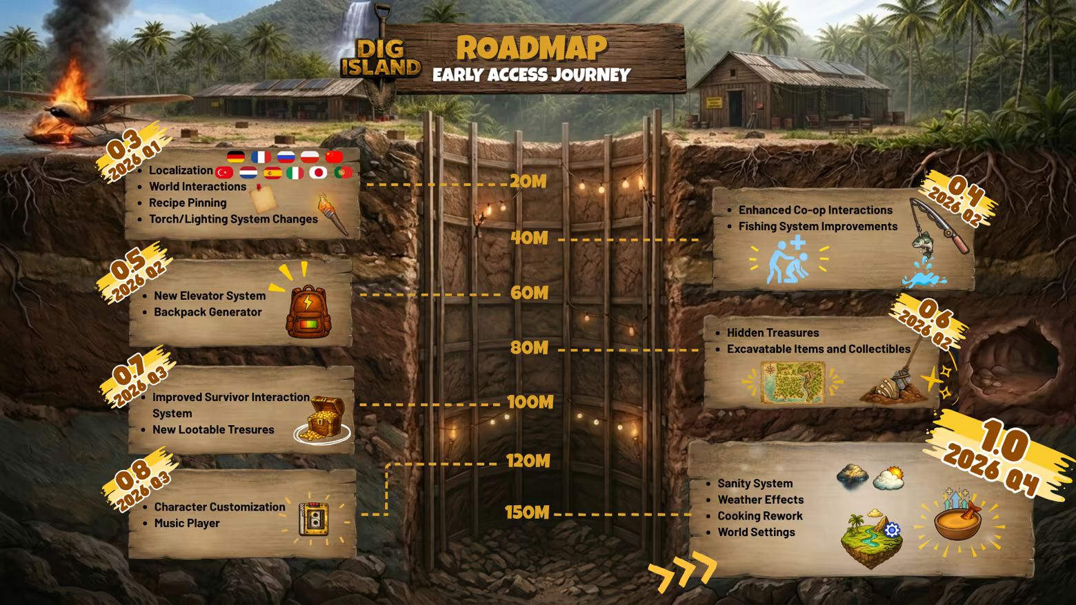 Up to four players can explore the island together, sharing tasks, managing the base, digging deeper underground, and surviving the island’s unpredictable challenges as a team.