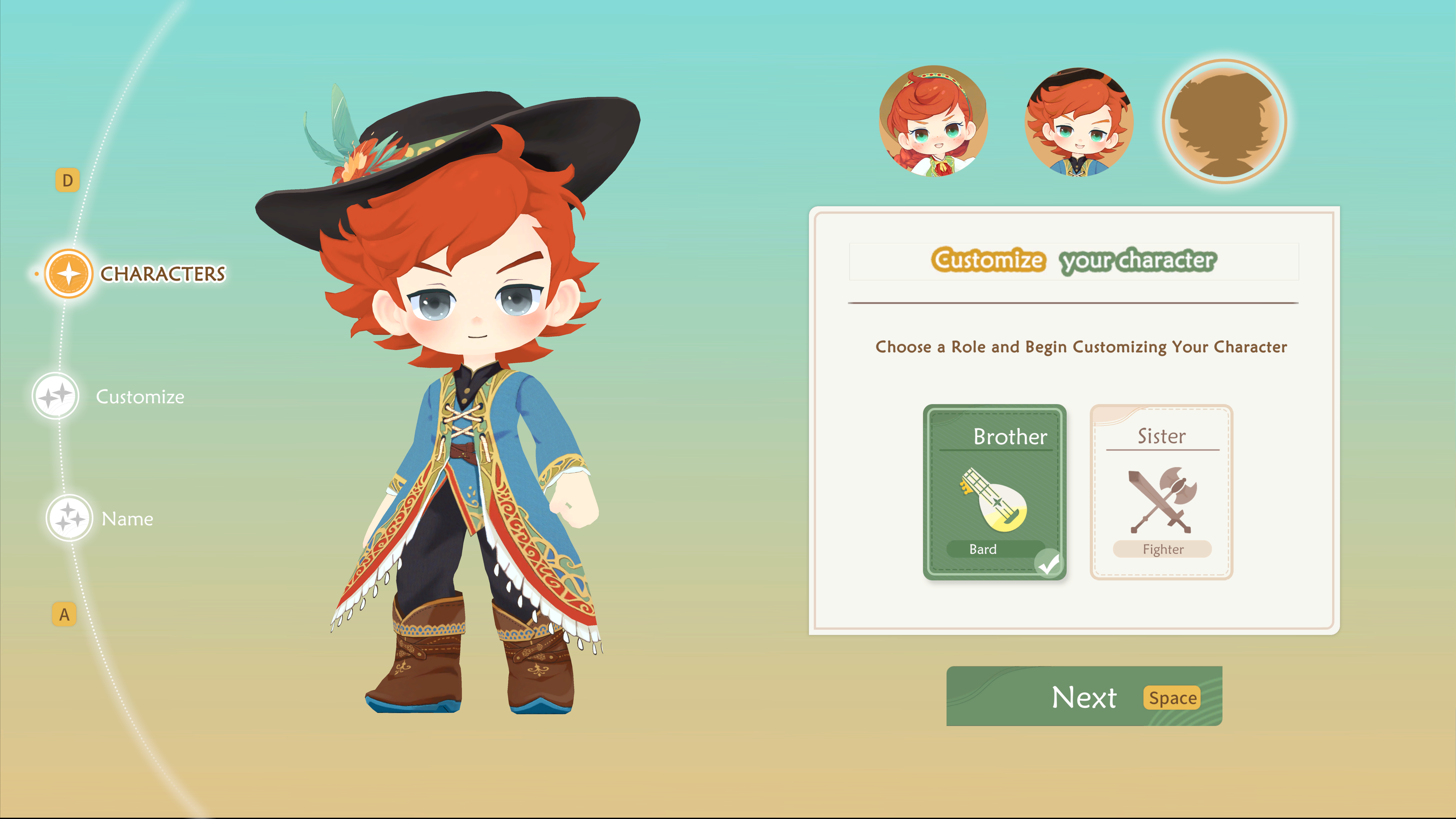 Choose to play as either sibling, or customize your own character to begin your journey. This game beautifully blends cozy comforts with whimsical adventures.