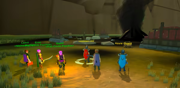 These players will level up alongside you (whether you’re online or not), they’ll find new items on their own and they’ll find them with your help. They’ll ask for loot drops, they’ll buy and sell loot, join and leave guilds, and even invite you to raids as they get to know you. They’ll remember you and how you treat them.
