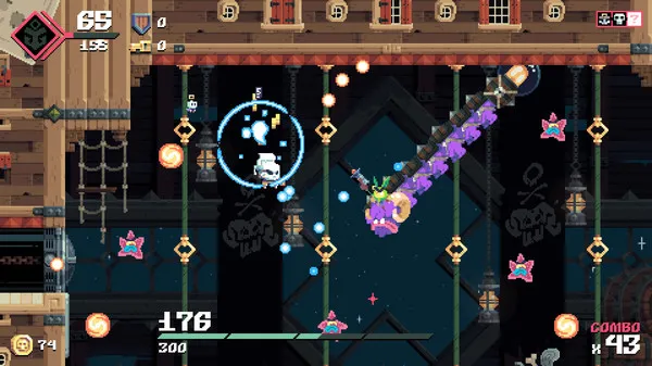 • Zip around with your mighty hookshot! Aim freely and toss your giant anchor at golden rings to propel yourself around the levels at high speeds, giving you the agility and swiftness needed to dodge hazards and enemy bullets.
