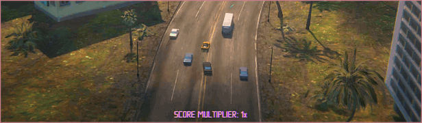 Welcome to FLORIDA INTERSTATE ’86, a light-weight driving game where the goal is to cruise into the sunset for as long as possible while earning points by collecting cassette tapes and driving dangerously.