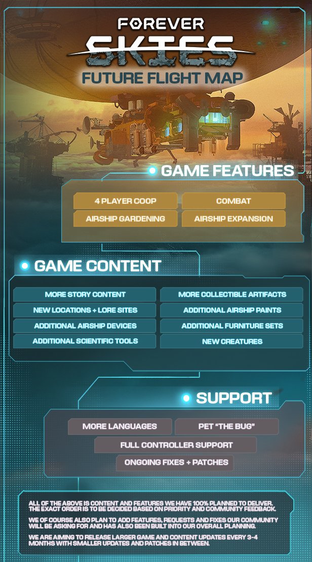 You will build and customize a high-tech airship. It will be your home, workshop, laboratory and more while flying above the surface of Earth. Control and steer it towards the ruins of our civilization and mysterious anomalies. Manage your airship hull and its integrity. Extract and gather resources to improve your airship and make it uniquely yours.