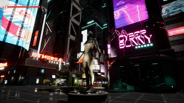 3D first-person adventure set in a cyberpunk environment.