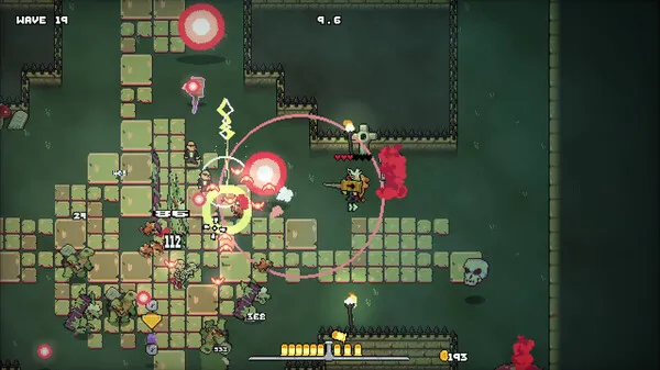 Choose from dozens of passive abilities after each wave. Call down lightning storms, spawn “Blood Brothers”, use your stamina as health, and more! Create the perfect build by choosing the right passives for your guns, or by forging the right guns for your passives!
