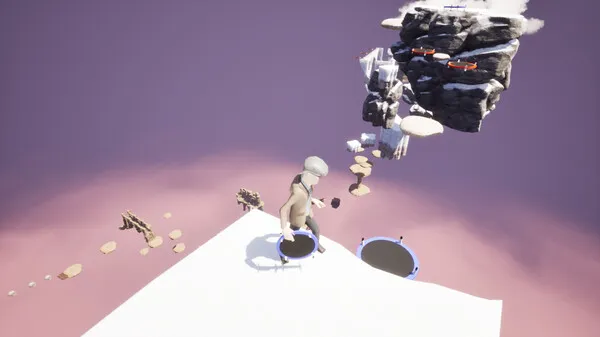Use your trampoline to catch your fall, throwing it onto the platforms ahead of you. Tilt your camera up or down to change the angle and distance of the throw.