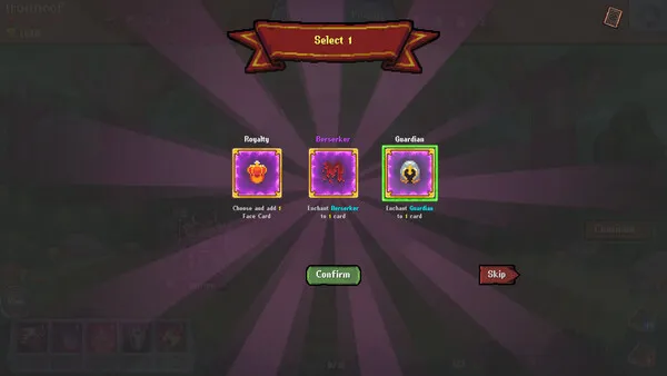 By collecting enchantments for your cards, you can improve their number value (change a “5” into a “6”), switch their suit (change a “diamond” into a “spade”), or apply special effects, including card-cloning and poison. By changing your cards’ suits or values you can continually improve your chances of drawing powerful poker-hands, which trigger devastating combo-effects.