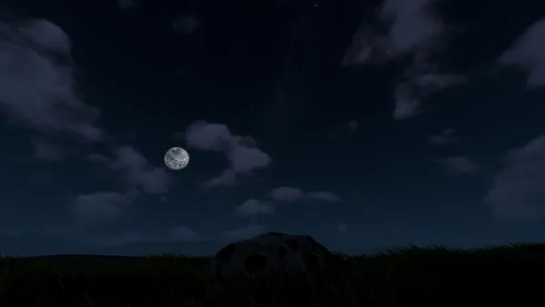 A vast meadow at any time of day – glowing with light in the daytime, or under the starry sky at night.