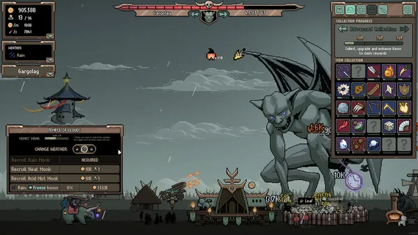 Upgrade items to discover additional unique effects. Select advisors specialized in either military, economy, or magic. Equip advisors with powerful items. Combine it with synergetic town upgrades to unleash crazy combos to annihilate bosses even faster.