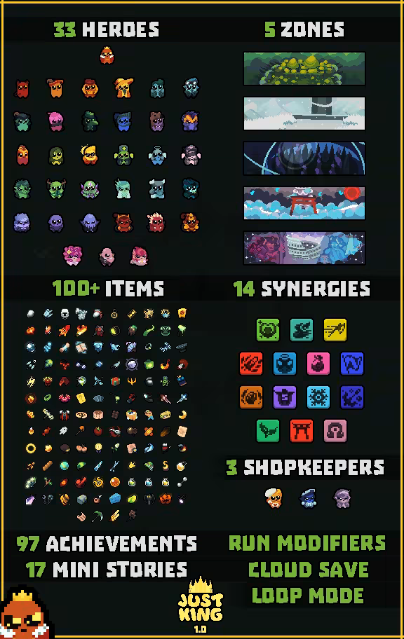 - Heroes: Assemble a team of 4 out of 33 unique heroes with different playstyles, match their synergies and level them up to unlock powerful abilities.