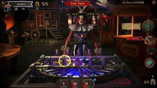 Each turn begins with the spinning of the wheel that determines your move. Will you land on a devastating attack, a powerful item, or a special move that will change the course of the game?