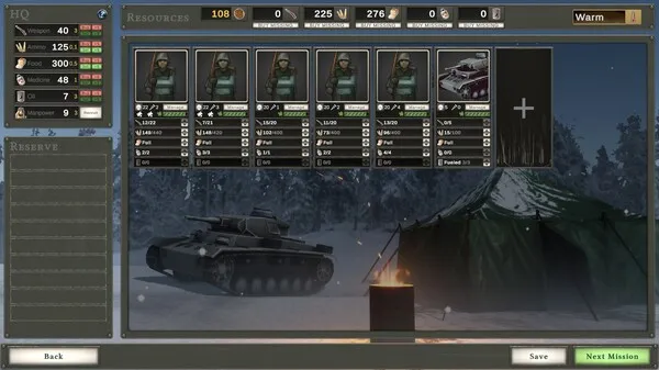 Between missions, you’ll need to care for your wounded, feed, heat and equip your men. But resources are scarce and winter is getting steadily harsher.