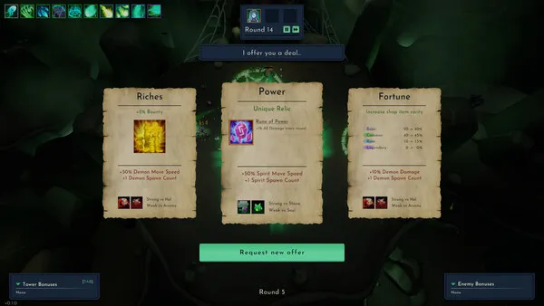 Weigh the consequences of devilish pacts that will unlock your true potential, but will also affect how enemies get stronger. Each type of enemy is strong or weak against different types of damage, so choose pacts that fit your build accordingly. Perhaps it’s worth it to be greedy and take the perfect relic despite the consequences. You’ll have to determine if economy, powerful relics, or higher quality items are what you need to succeed. Choose from the options available, or up the ante and bargain for a better deal at the risk of what it may cost you.