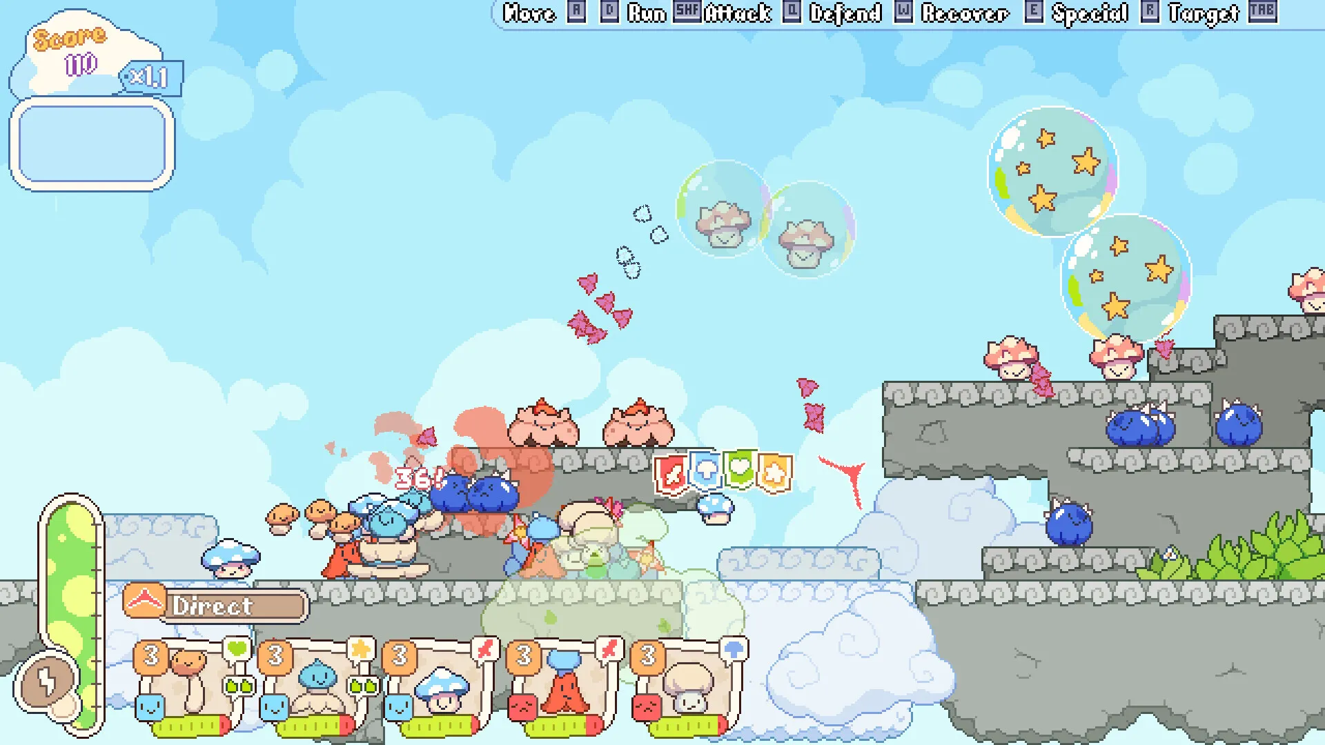 Fight the greedy shrooms, not the keyboard. A simple, flexible control scheme lets anyone control the shroom-platoon with ease on both controllers or mouse and keyboard.