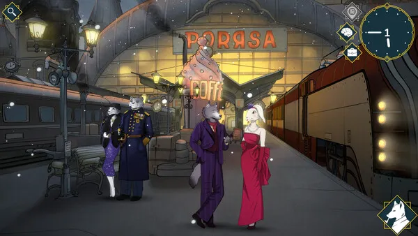 Be the slyest fox detective and find a killer in a race against time. Time progresses as you sniff out clues, eavesdrop on conversations, and interrogate passengers. Can you solve the case before the train reaches the last station? If not, war can break out between the two biggest powers of the Wilderness!