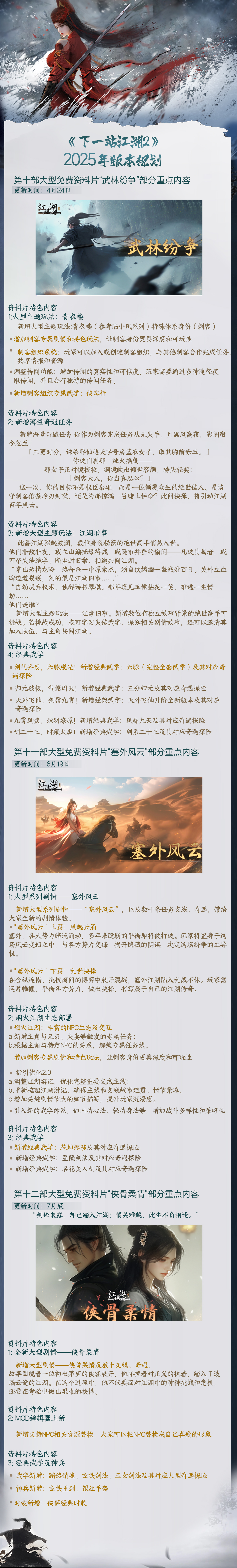 庞大内容、及时更新:上线迄今已超过百更、八部大型玩法资料片!2025年我们将继续砥砺前行,用更多更好玩的内容来填充这个江湖大世界!