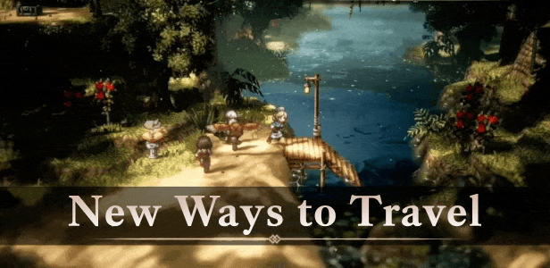 - Begin your adventure as one of eight new travelers, each with their own origins, motivations, and unique skills.