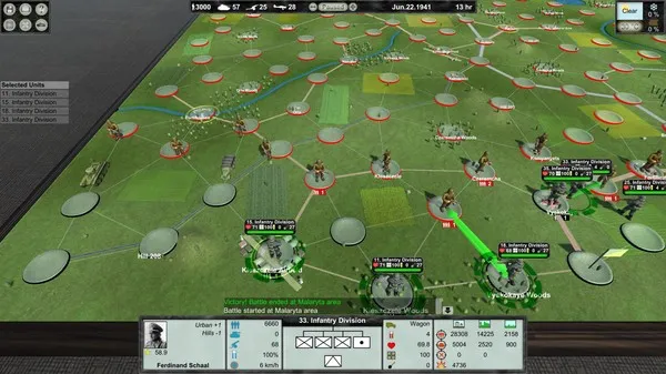 Capture strategic points as quickly as possible. Find the best way to defeat the enemy with minimal casualties. Use tank divisions to encircle large enemy formations and cut supply routes. Repel enemy counterattacks and gain air superiority. Keep an eye on the division strength, fatigue, supply level, road condition, weather and attrition.