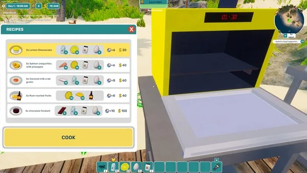 Collect fresh produce on the island and cook delicious meals for your customers. Fruits, fish, chicken, turn into refined dishes thanks to a range of cooking furniture. Unlock levels to get faster utensils!