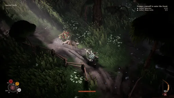 You are not alone in these woods. Scattered throughout the forest, you will find pilgrims, each with their own story and unique requests. Help them navigate their path and discover their ultimate fate. In this world, every encounter is a piece of the puzzle in your quest for New Eden.