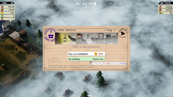 You start with a very basic port, but this port will not be enough to survive in this post-WWI world. You must quickly develop your infrastructure if you want to last (and the city to survive). Construct new buildings, upgrade the ones you already have, or research new technologies! You can also hire employees to increase your building’s efficiency, but they will ask for a daily income. And don’t forget to send some resources to the city, otherwise your citizens will die!