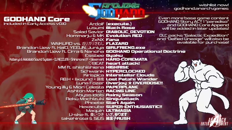 In GODHAND’s Early Access version, experience 25 stages of keyboard smashing to cute pop songs, really fast hardcore, and really really really fast hardcore.