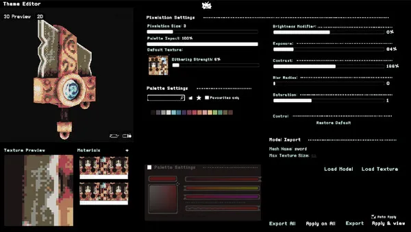 This software is focused exclusively on shading and applying a unique pixelated style to existing textures.