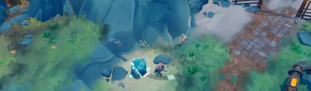 During your journey, you’ll gather resources to aid your quest. Equip your fishing rod, pickaxe, and gloves to collect fish, minerals, and roots. All essential to progress and unlock new biomes and locations!
