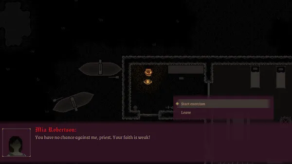 Demonic possessions are increasing all over the land. You are a priest being trained by the church to perform exorcisms. Equipped with your Exorcism Book and a case of Holy Relics you are sent to aid the afflicted population.