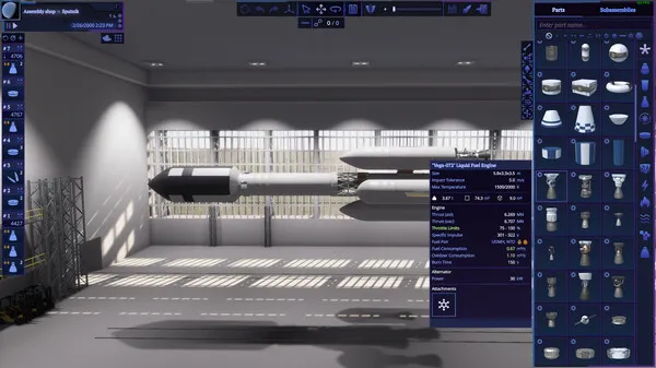 Assemble spacecraft and rockets from over 30 available parts with varying physical parameters. The parts can be joined together through a system of connectors and slots. This significantly reduces the number of non-viable configurations without limiting the flights of your imagination.