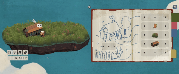 While not sleeping, Ropuka is always cutting grass. Use it as a currency to upgrade his tools, improve the grass’ quality or spend it decorating the island.