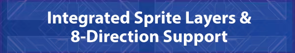 For party characters, customize their look by using the built-in sprite layering system. Build and change character appearances. The sprite system supports 8-directional movement and can customize both the number of frames in a cycle and the time between separated frames.