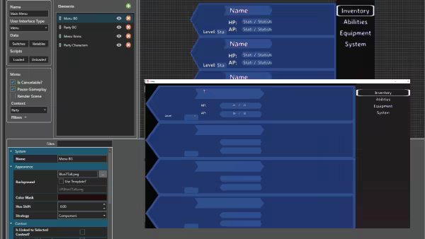 With a robust User Interface designer, create your own message boxes, menus, screen overlays, battle menus and build templates that you can use throughout your game!