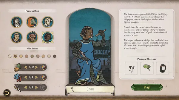 A colorful cast of clients brings you requests of all kinds – grand battles between snails and knights, wholesome scenes of peace, love, and the plague… and those aren’t even the weird ones. But the customer is always right! Your job is to be creative and have fun as you fulfill their wishes in your own style. Spread your art across the kingdom and become celebrated by bards and historians for centuries to come.