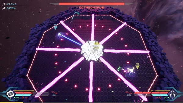 Shape Shifter: Formations is an action twin-stick shooter with rogue-lite elements, where you must destroy hordes of geometric enemies alone or with a friend. Select your ship and combine a large variety of weapons, abilities and infinitely stacking upgrades to craft your own unique build.